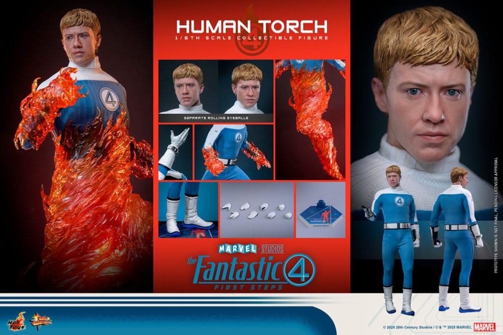 Hot Toys dévoile la figurine articulée Movie Masterpiece 1/6 Human Torch (30 cm), inspirée du film Les Quatre Fantastiques : Premiers pas.