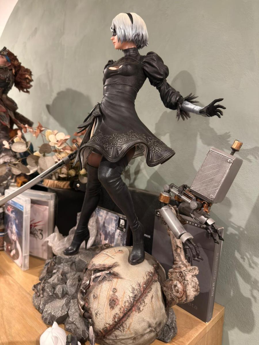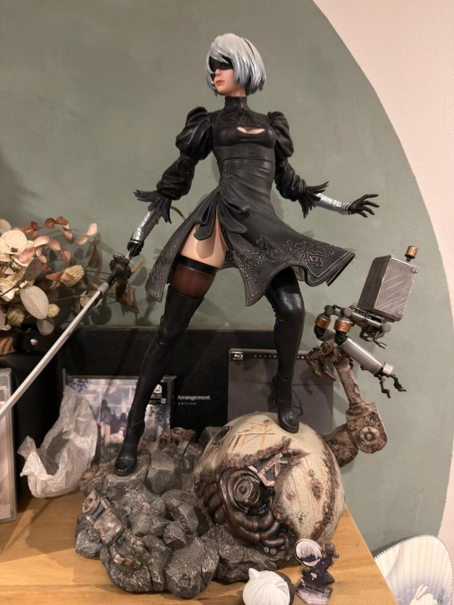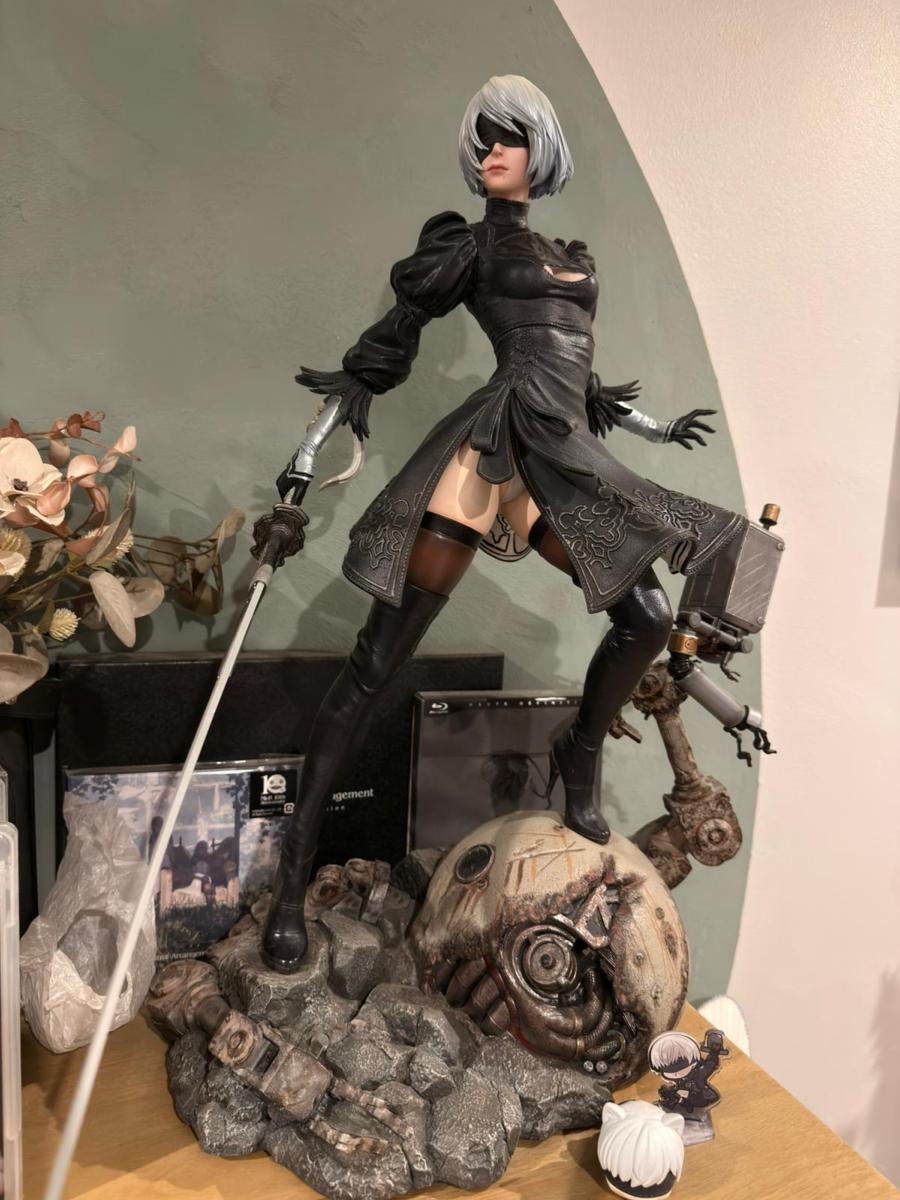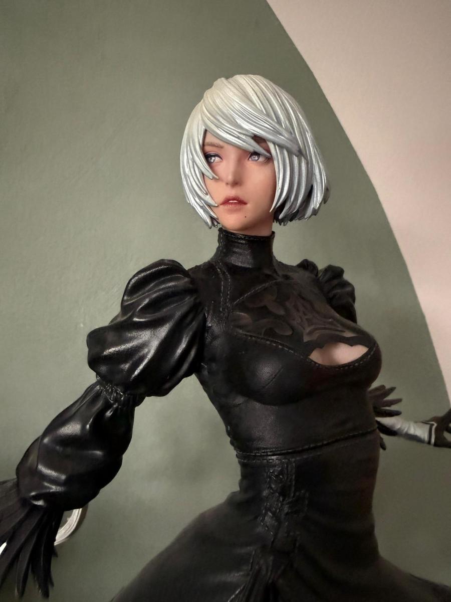 Cette pièce premium met en scène 2B dans une posture iconique, fidèle à l’esthétique élégante et sombre de la licence. La sculpture de haute précision, le travail des textures (tenue, armes, socle) et la peinture appliquée avec soin offrent un rendu spectaculaire, à la hauteur des standards Prime 1 Studio.