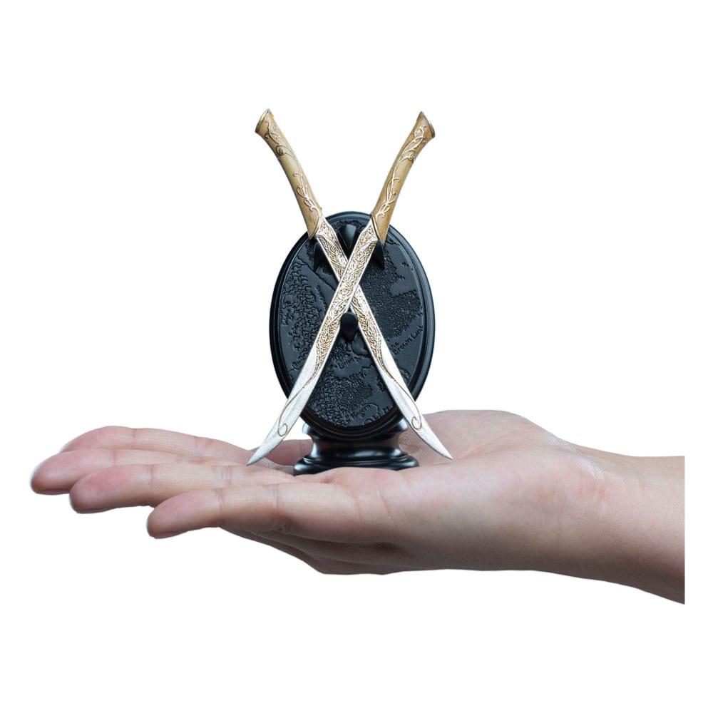 - Bonus : réplique 1/4 des couteaux de Legolas (support inclus)