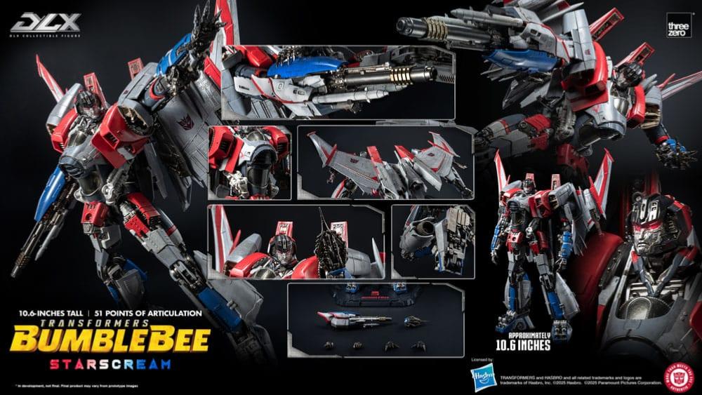 Entrez dans l’univers explosif de Transformers: Bumblebee avec la figurine DLX Starscream signée ThreeZero, une pièce d’exception pour les collectionneurs et fans de robots mythiques.